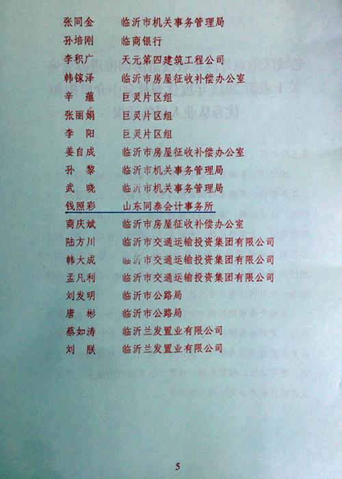 2015年,在臨沂市老城區(qū)重點(diǎn)片區(qū)征收改造協(xié)調(diào)推進(jìn)辦公室領(lǐng)導(dǎo)下,我所選派業(yè)務(wù)骨干參與老城區(qū)征收改造和開發(fā)建設(shè)工作,發(fā)揚(yáng)謙虛謹(jǐn)慎、愛崗敬業(yè)、干事創(chuàng)業(yè)、無私奉獻(xiàn)精神,圓滿完成了臨沂市老城區(qū)重點(diǎn)片區(qū)征收改造協(xié)調(diào)推進(jìn)辦公室領(lǐng)導(dǎo)交辦的跟蹤審計(jì)、工程咨詢、評(píng)估等工作任務(wù),展示出“同泰”人的水平和實(shí)力,為事務(wù)所創(chuàng)造經(jīng)濟(jì)效益。