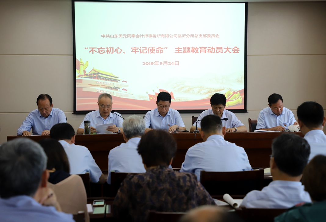 日前,中共山東天元同泰會計師事務(wù)所黨總支召開動員大會,在全所范圍內(nèi)全面啟動“不忘初心、牢記使命”主題教育活動。會上傳達(dá)學(xué)習(xí)了注冊會計師行業(yè)黨委和市行業(yè)黨委的有關(guān)文件,公布了事務(wù)所 “不忘初心、牢記使命”主題教育活動實(shí)施方案,總支書記裴波苓作了主題教育工作部署,對開展各項(xiàng)活動進(jìn)行了安排。同時,組織全體黨員進(jìn)行第一次集中學(xué)習(xí)。 9月12日,事務(wù)所黨總支、審計評估支部和項(xiàng)目管理支部支部書記與黨務(wù)工作者參加了省注協(xié)行業(yè)黨委召開的主題教育動員部署視頻會議。在省注協(xié)行業(yè)黨委下發(fā)主題教育實(shí)施方案后,事務(wù)所黨總支立即召開了總支擴(kuò)大會議進(jìn)行學(xué)習(xí),對如何開展主題教育活動進(jìn)行了安排,研究并制訂了實(shí)施方案??傮w要求是以深入學(xué)習(xí)習(xí)近平新時代中國特色社會主義思想為根本任務(wù),結(jié)合事務(wù)所實(shí)際深入貫徹“守初心、擔(dān)使命,找差距、抓落實(shí)”的總體要求,以事務(wù)所脫鉤改制20周年為契機(jī),推動事務(wù)所黨員和從業(yè)人員全面系統(tǒng)學(xué)習(xí)貫徹習(xí)近平新時代中國特色社會主義思想,教育引導(dǎo)全體人員發(fā)揚(yáng)革命傳統(tǒng)和優(yōu)良作風(fēng),忠誠擔(dān)當(dāng),誠信執(zhí)業(yè),再創(chuàng)佳績。具體工作安排要結(jié)合本事務(wù)所和黨員實(shí)際,創(chuàng)造性的落實(shí)理論學(xué)習(xí)教育、調(diào)查研究、檢視問題、整改落實(shí)具體任務(wù)。