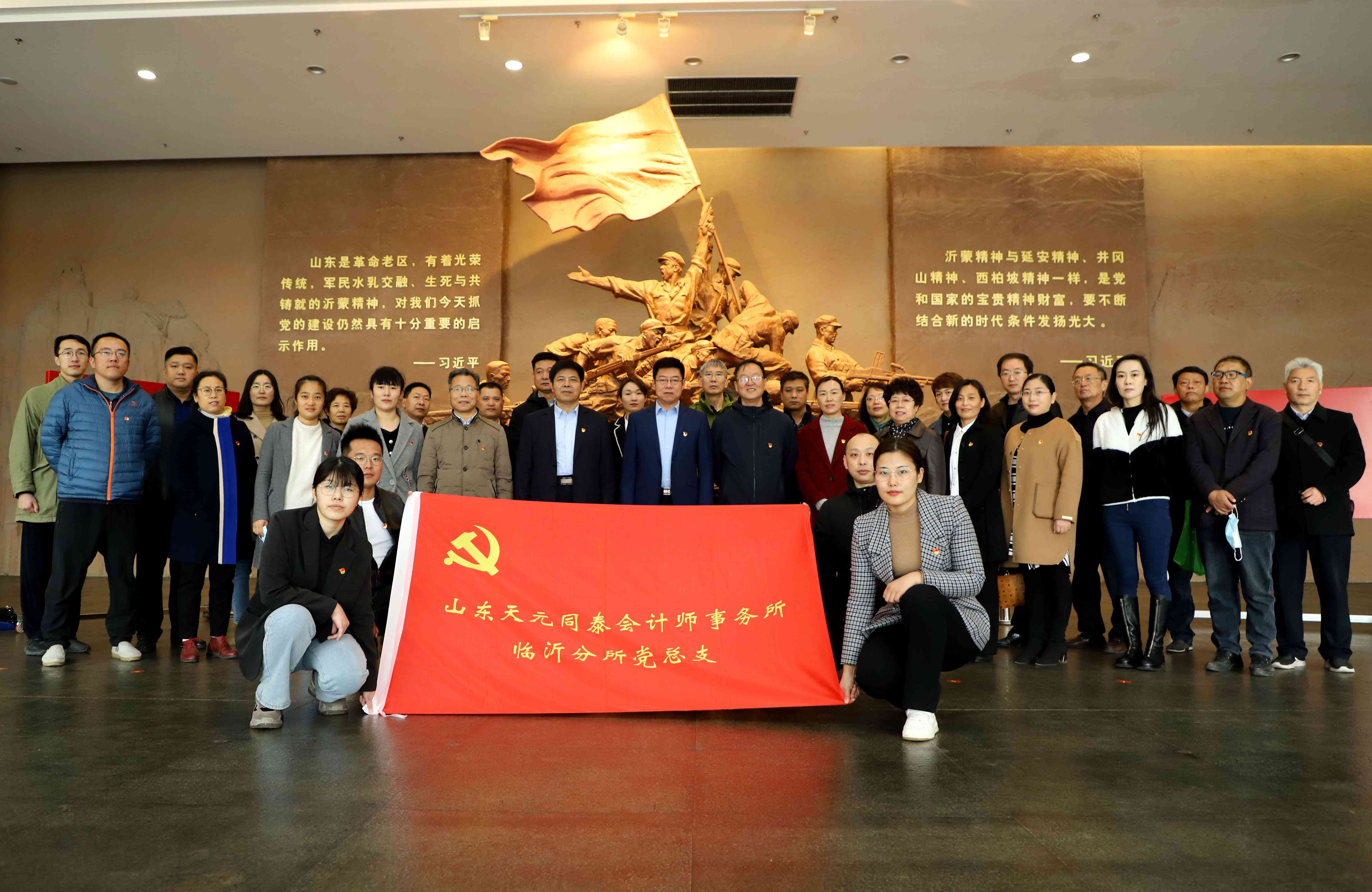 為深切緬懷革命先烈,傳承紅色基因,加強(qiáng)黨員黨性體驗(yàn)和政治忠誠教育,2021年4月1日,山東天元同泰會計(jì)師事務(wù)所臨沂分所黨總支組織40余名黨員赴華東革命烈士陵園參加市注冊會計(jì)師行業(yè)黨委組織的“學(xué)黨史 憶英烈 守初心 當(dāng)先鋒”清明黨性教育活動。 在革命烈士紀(jì)念塔前,黨員們集體向革命烈士紀(jì)念塔敬獻(xiàn)花籃,向烈士默哀,重溫入黨誓詞,深情緬懷革命先烈。隨后天元同泰黨總支組織黨員瞻仰和學(xué)習(xí)了“仰風(fēng)承志亭”、丁秋生、常恩多、劉炎烈士墓和沂蒙革命紀(jì)念館。 一段段水與火的革命歷程,一個個動人心弦的先烈故事,一幅幅感人至深的紅色沂蒙畫卷,使大家思想受到了震撼,心靈得到了洗禮。黨員們深切感受到黨和人民軍隊(duì)與沂蒙人民鑄就的水乳交融、生死與共的歷程,為共產(chǎn)黨人浴血奮戰(zhàn)、老區(qū)人民破家支前的感人事跡而感動,更為新時代沂蒙人民開拓奮進(jìn)、家鄉(xiāng)發(fā)生巨變而深深震撼。廣大黨員干部紛紛表示要繼承先烈遺志,傳承紅色基因,弘揚(yáng)愛國精神,不忘初心和使命,凝聚奮進(jìn)力量立足本職工作,充分發(fā)揮共產(chǎn)黨員先鋒模范作用,和全體同泰人一起用實(shí)際行動和優(yōu)異的成績向建黨100周年獻(xiàn)禮。